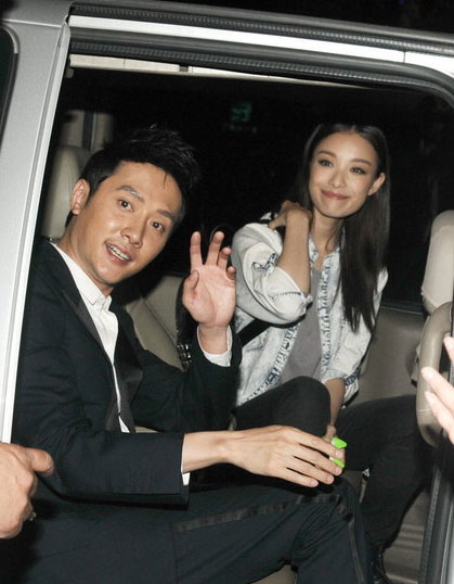 倪妮冯绍峰深夜牵手秀甜蜜 向粉丝招手面露微笑